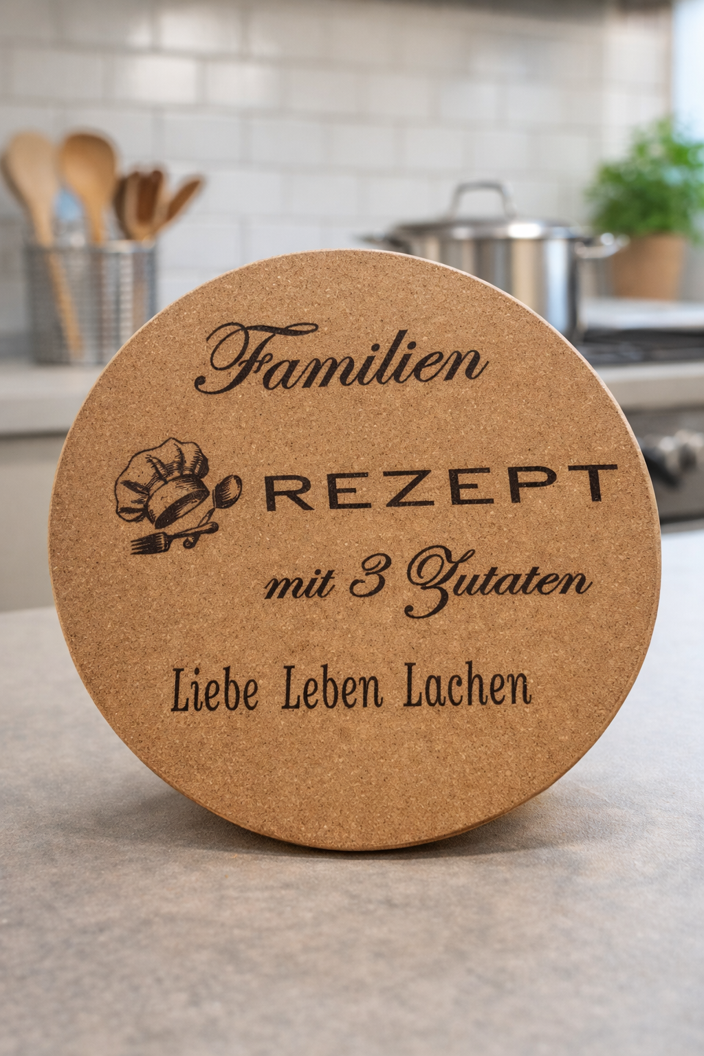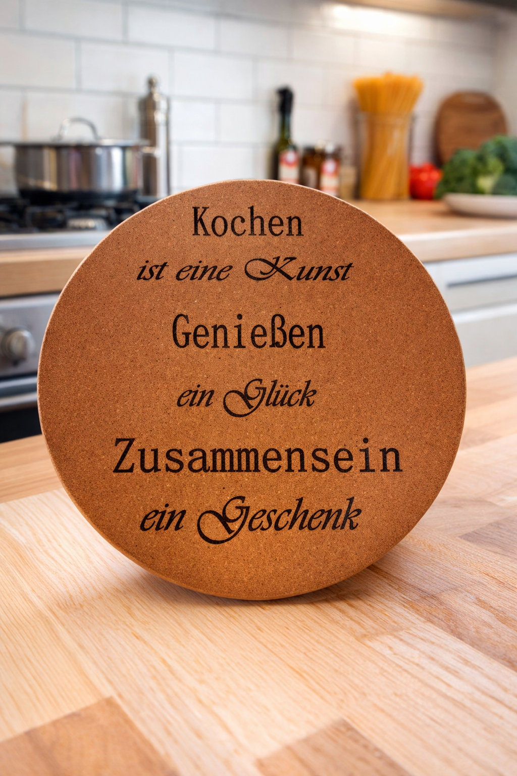 Dekorativer Topfuntersetzer – nach Ihren Wünschen gravierbar und erhältlich in zwei Größen: 19 cm und 22 cm Durchmesser.