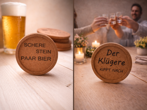 So wird jeder Abend zum Spaß – mit einem Untersetzer, der für Lacher sorgt. Das Beste: Jeder Spruch ist möglich und individuell laserbar.